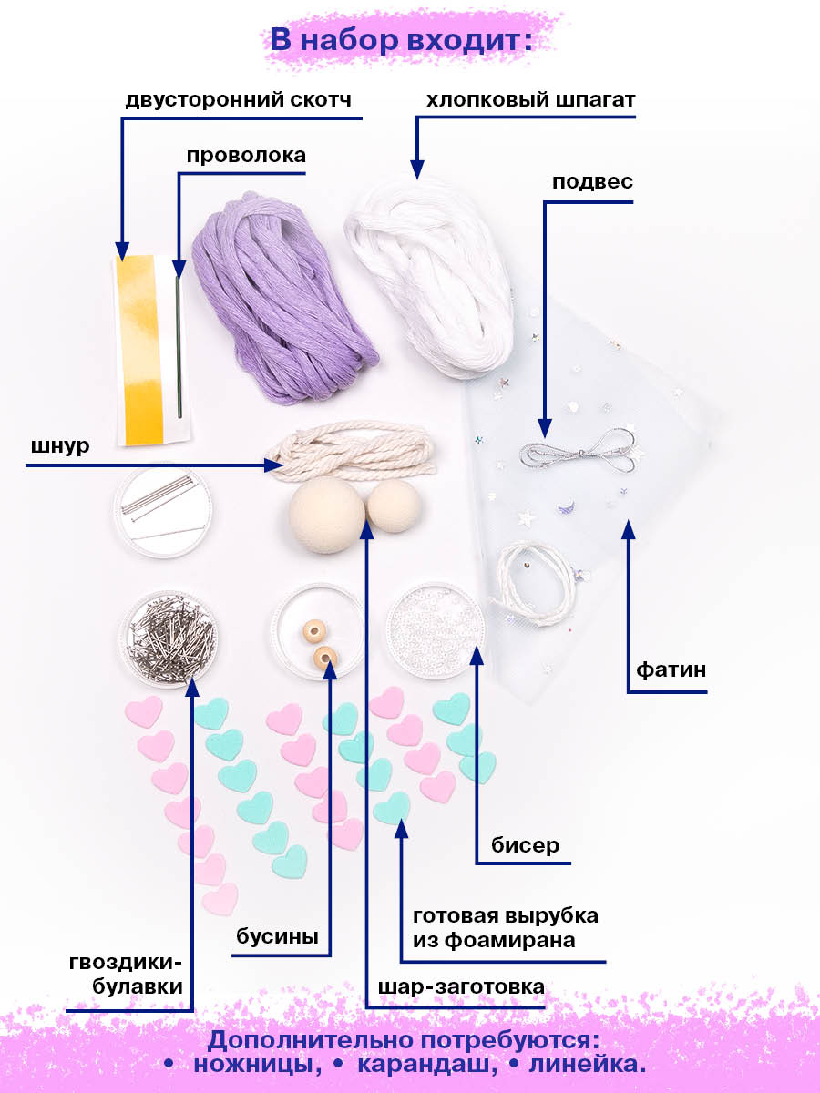 Наборы для творчества от Волшебной мастерской. Представляем вашему вниманию новую серию создай куклу своими руками. Наборы для творческого шитья выполнены в эко стиле. Прекрасно смотрятся в любом интерьере, создают неповторимую атмосферу тепла и уюта. Куколка из пряжи и шнуров, фоамирана понравятся детям и взрослым, рекомендуемый возраст для рукоделия от 13 лет. Модели несложные в своем исполнении, подробная пошаговая инструкция прилагается. Все необходимые материалы включены в комплект. Готовое изделие можно использовать как оберег, ловец снов или игрушку, украшение на елку. Кукла в технике макраме – отличный подарок, сделанный своими руками, хранящий теплоту рук мастера. Беспроигрышный вариант для поделки в школу, на конкурс. Устройте мастерскую по изготовлению новогодних игрушек у себя дома